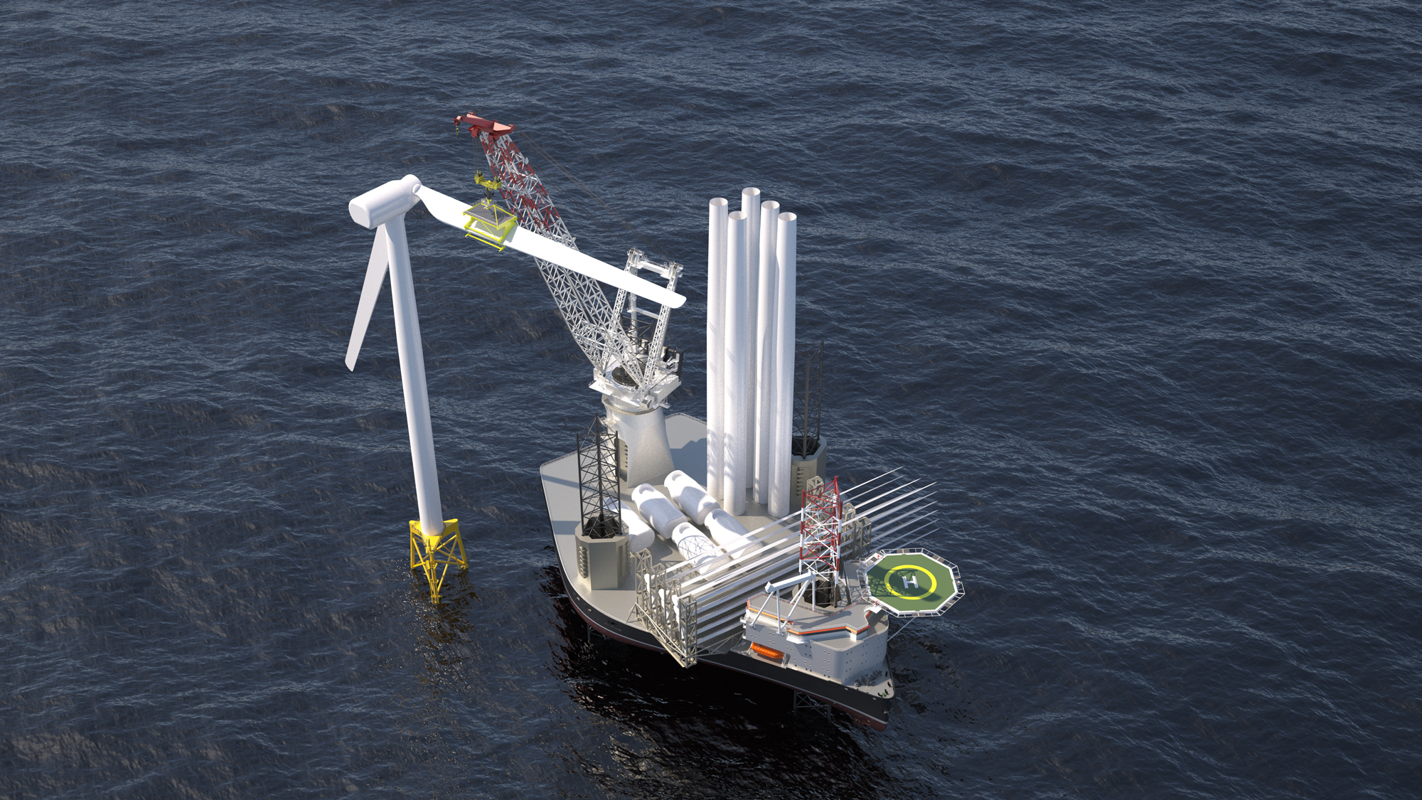 A DP2 wind turbine installation vessel in the X-JACK series, designed to carry and install 6-12 next generation wind turbines to realize even the world’s most remote wind farm locations. X-JACK is a patented layout with a simple cruciform primary structure, achieving weight savings of 10 to 15 per cent.